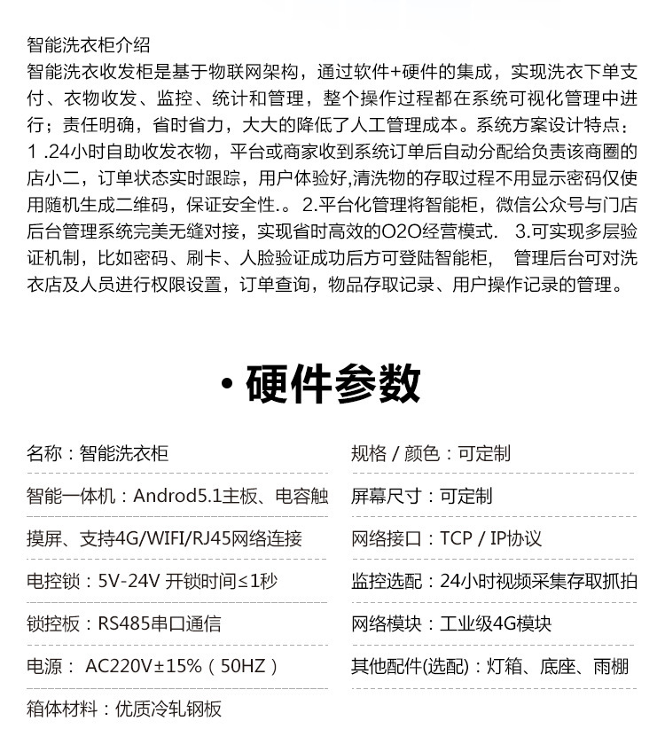 智能洗衣柜可投放于小區(qū)、校園、醫(yī)院、公寓等人流量大且密集的區(qū)域。智能柜搭載移動互聯(lián)網(wǎng)、物聯(lián)網(wǎng)等相關(guān)技術(shù),結(jié)合洗衣軟件,搭建起洗衣智能化自助平臺。是洗衣行業(yè)的人工智能與互聯(lián)網(wǎng)+生活服務(wù)融合下的洗滌新模式。
