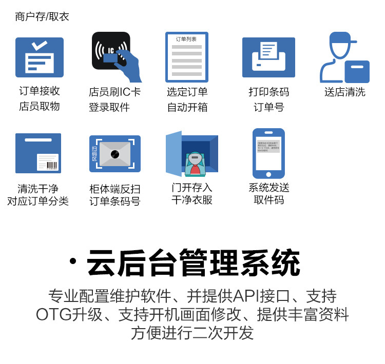 當(dāng)今大數(shù)據(jù),人工智能,物聯(lián)網(wǎng)等技術(shù)手段的革新,自助經(jīng)濟(jì)服務(wù),給人們帶來方便和全新的購物體驗。把生活與智能化緊密結(jié)合,提升生活幸福感。智能洗衣柜是顧客與洗衣店之間的物流智能柜,洗衣店為需要洗衣、洗鞋、干洗等用戶提供全天24小時自助服務(wù)。